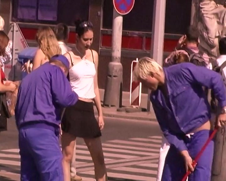 Hier maak je kennis met een heel ander soort straatreiniging, want niet alleen stoepen en straten worden geveegd, ook sommige meisjes krijgen een goede borstelbeurt! Ja, onze jongens van de stadsreiniging nemen hun werk heel serieus, want als het stof weg is, spuiten ze de poesjes af met hun harde slangen.